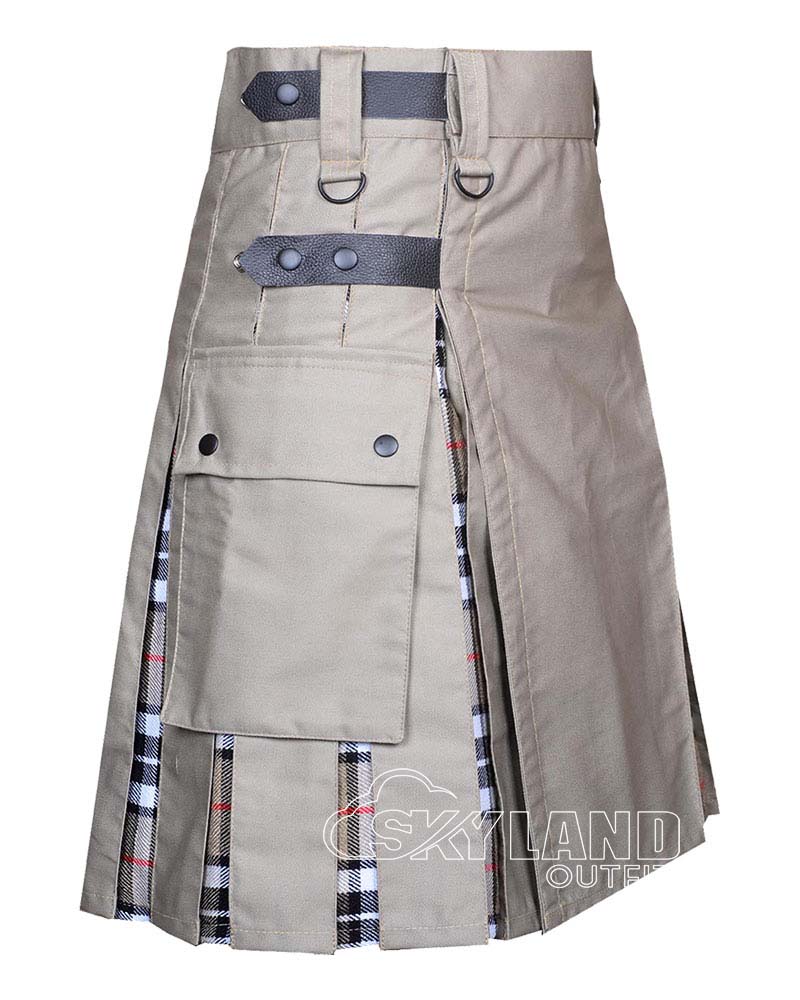 Wallace Tartan Hybrid Utility Kilt | Khaki Cotton Men Kilts