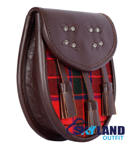 Scottish Rose Tartan Sporran Brown Leather Scottish Sporran