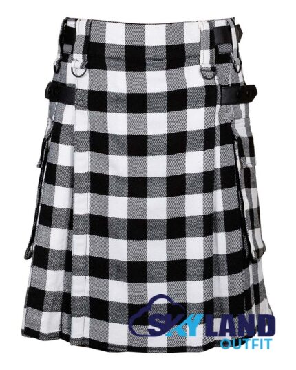 White, Black Rob Roy Tartan Kilt Modern Utility Kilts