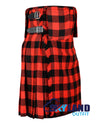 Saddle up beside Rob Roy himself. Eight yards of 16 oz wool-blend worsted—fiery red field crossed by jet-black lines—are pleated to the sett and cut on the bias for that fearless Highland swing. Twin deep-cargo pockets snap off in seconds, turning field-ready utility into formal elegance. Hand-sewn in Scotland with three adjustable leather straps, chrome buckles and traditional fringe; fully lined waistband kills itch, selvedge-sealed hem stops fray. Made to your exact measurements for weddings, games or festival weekends—carry 300 years of MacGregor pride with 21st-century function.
