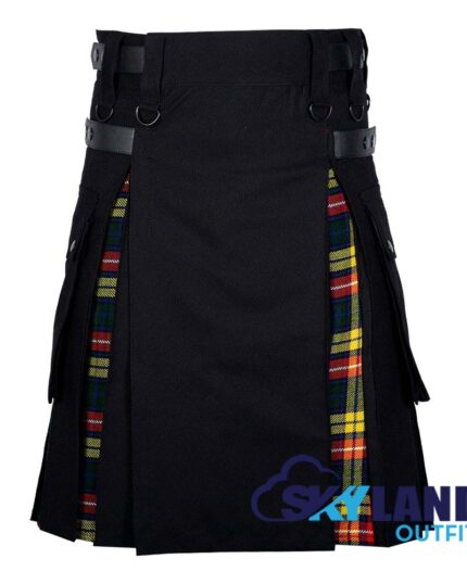 Hybrid Utility Kilts – Black Cotton & Buchanan Tartan Kilt