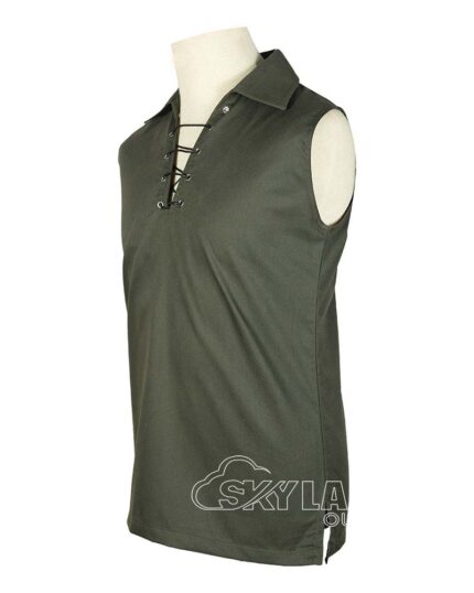 Jacobite Ghillie Kilt Shirt Green Cotton Jacobean Sleeveless Shirt