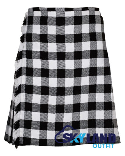 White, Black Rob Roy Tartan 8 Yard Kilt Traditional Scottish Kilt