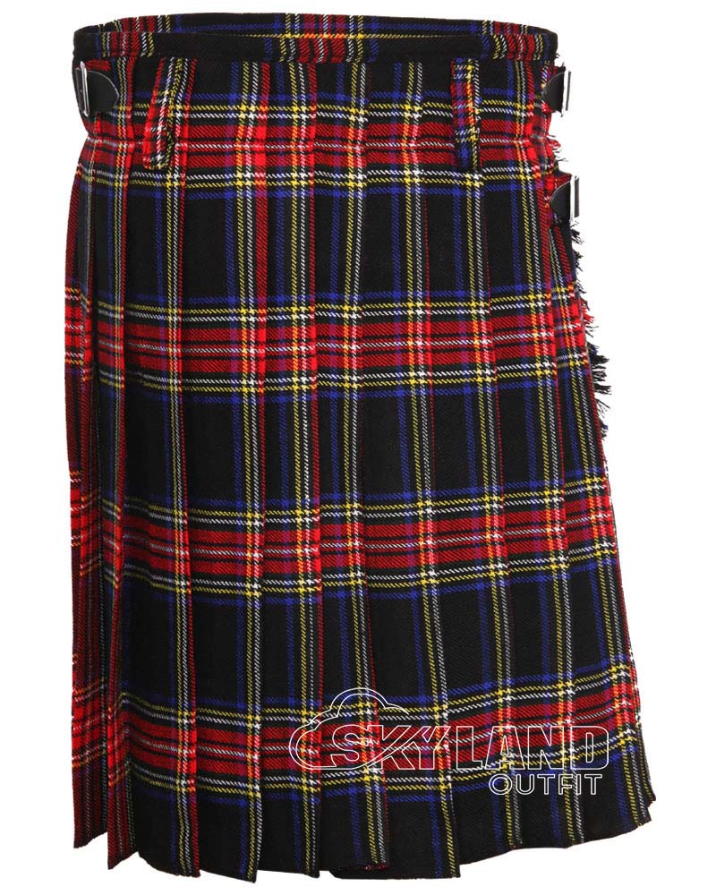 Black Stewart Tartan 5-Yard Kilt | Lightweight Casual Kilts