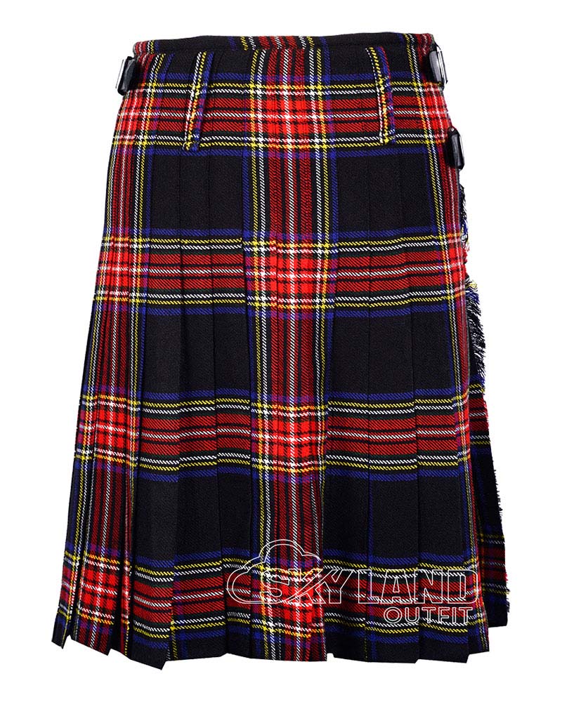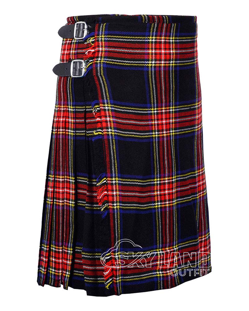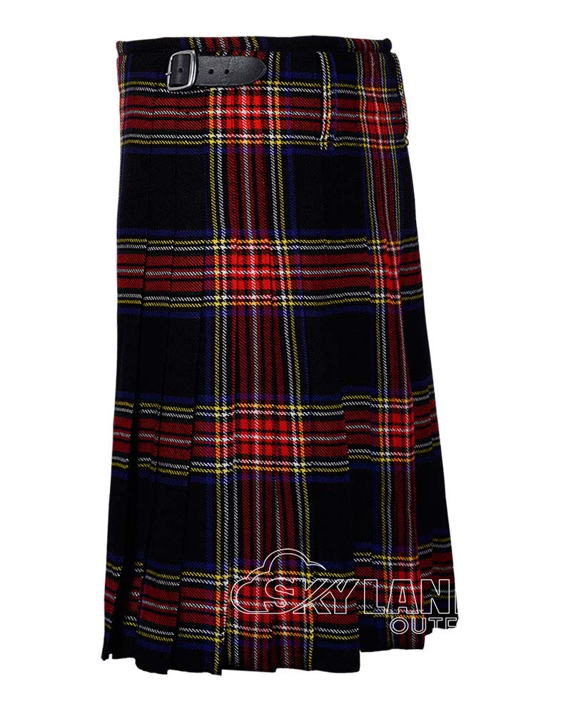 Scottish Black Stewart Tartan Kilt Scottish 8 Yard Kilt for Men. Traditional 8-yard tartan highlander kilt is a knee-length garment made of wool tartan. It is typically made with 8 yards of fabric, which is pleated and folded to create its distinctive shape.