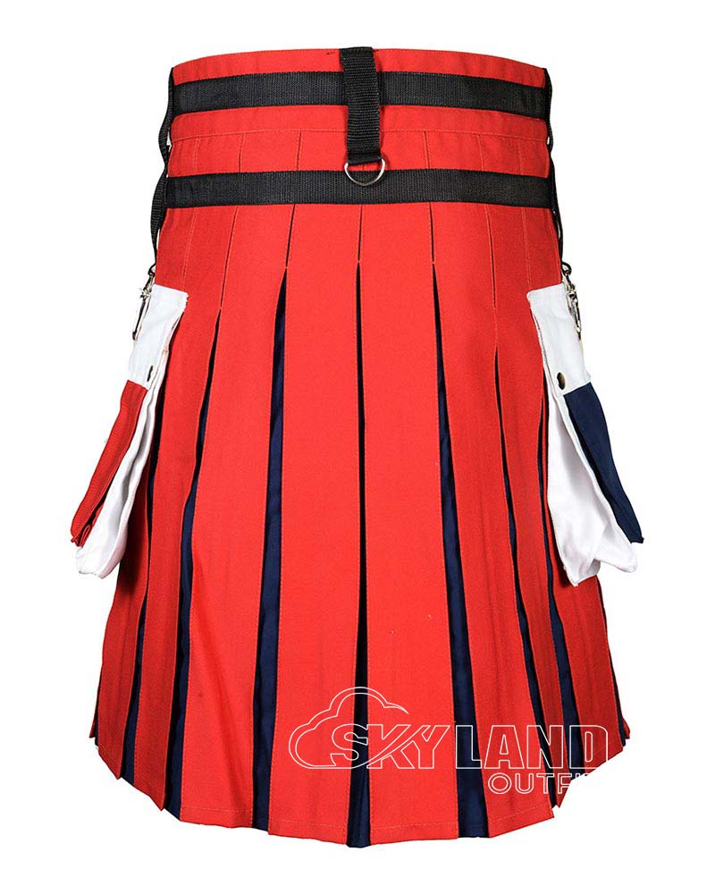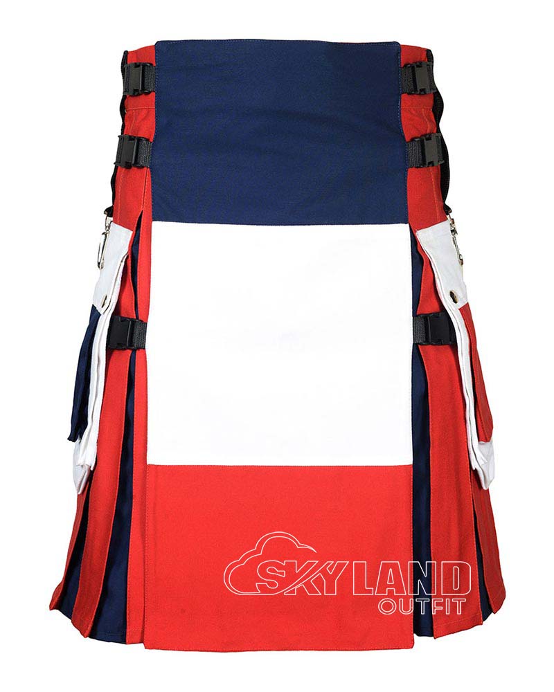 French Flag Utility Kilt – Handmade Cotton Patriotic Kilt for Men