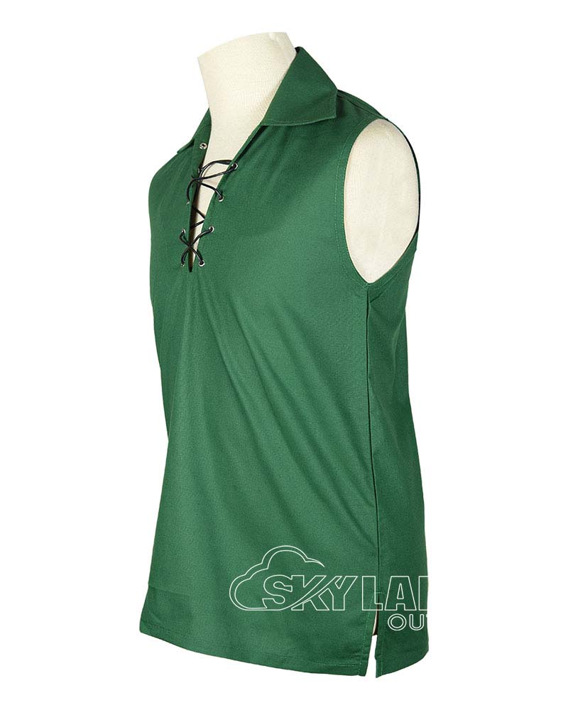 Green Jacobite Ghillie Kilt Shirt | Sleeveless Cotton Jacobean