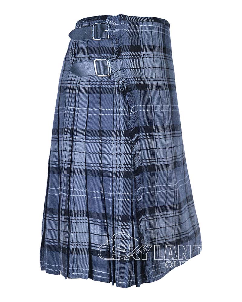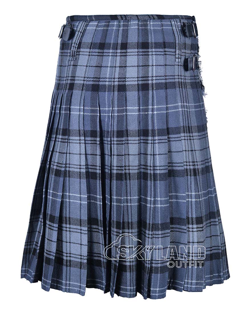 The Hamilton Grey Tartan 8 Yard Kilt features authentic tartan fabric, deep pleats, and adjustable straps for a secure fit. This traditional Scottish kilt for men offers classic Highland elegance for weddings, formal events, and clan gatherings.