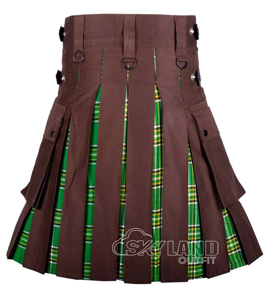 - What is a hybrid utility kilt? It combines utility pockets/straps with traditional tartan pleats. Therefore, it offers function and Irish Heritage appeal.