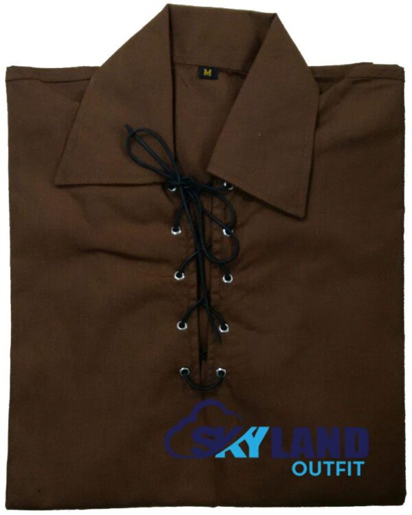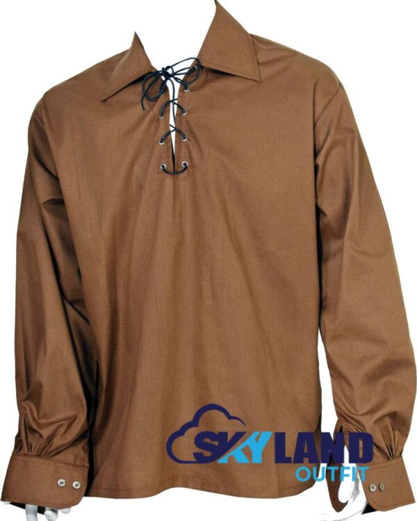Jacobite Ghillie Kilt Shirt Brown Cotton Jacobean Full Sleeve Shirt