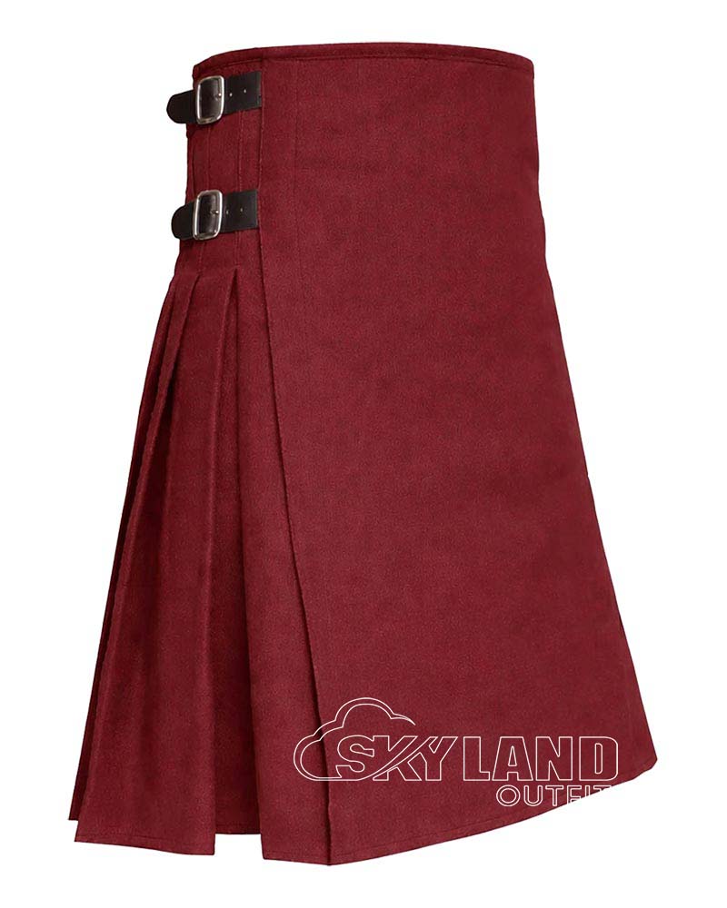Maroon Wool 8-Yard Kilt | Premium Hand-Pleated Traditional Kilts