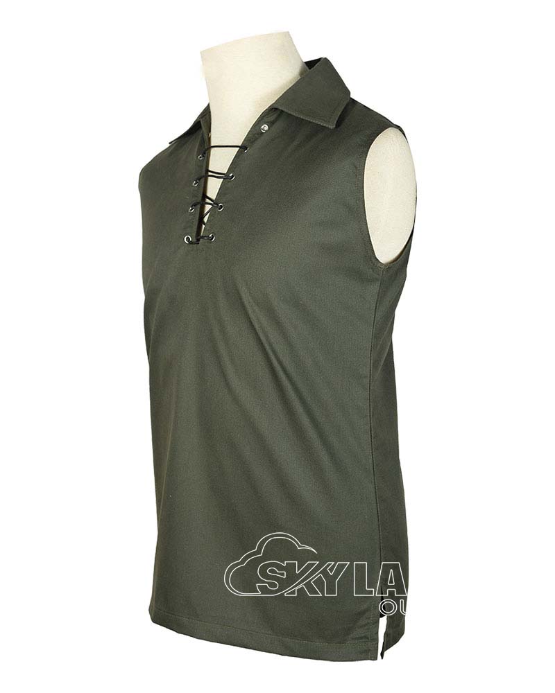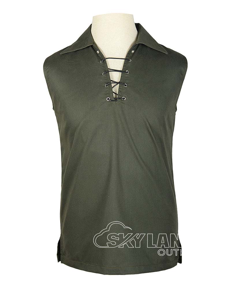 Olive Green Jacobite Ghillie Kilt Shirt | Sleeveless Cotton Jacobean