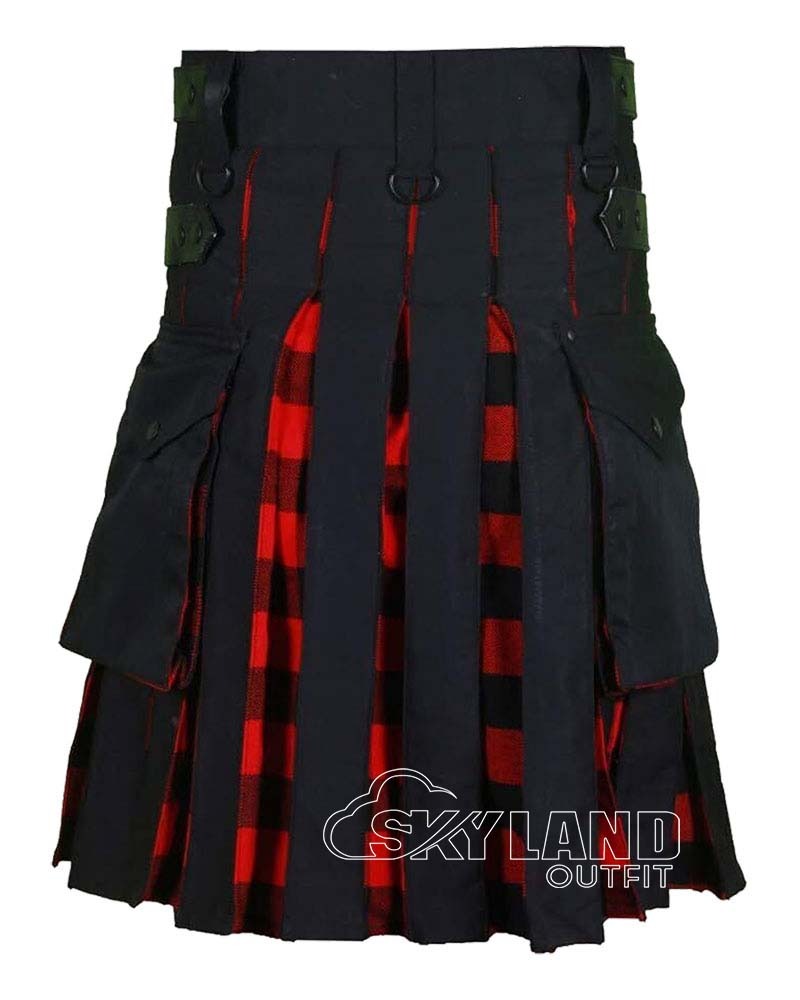 Red Black Rob Roy Tartan Hybrid Utility Kilt | Black Cotton