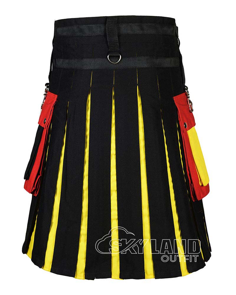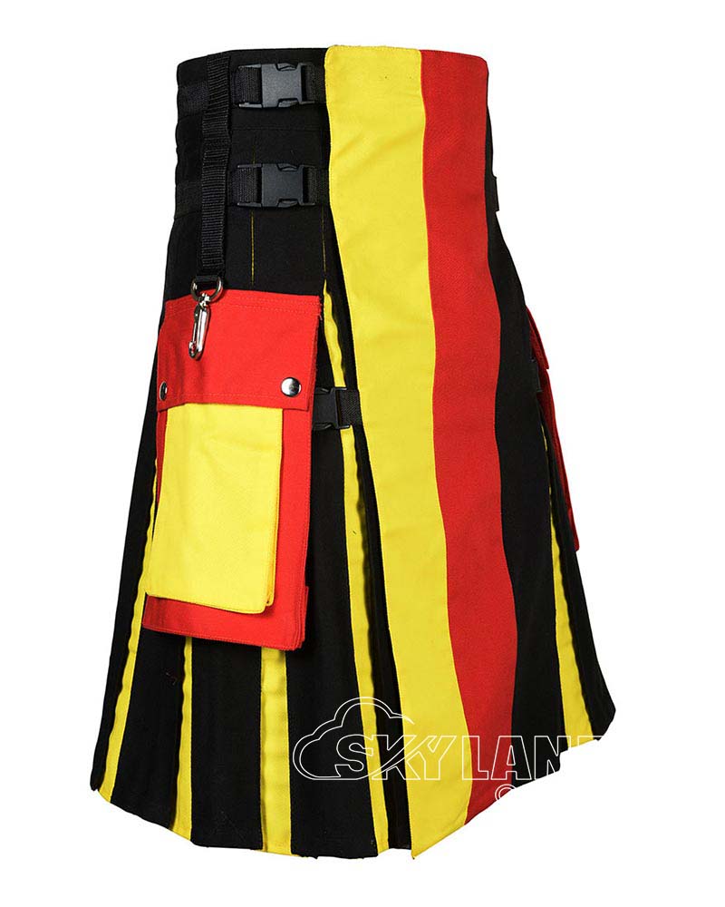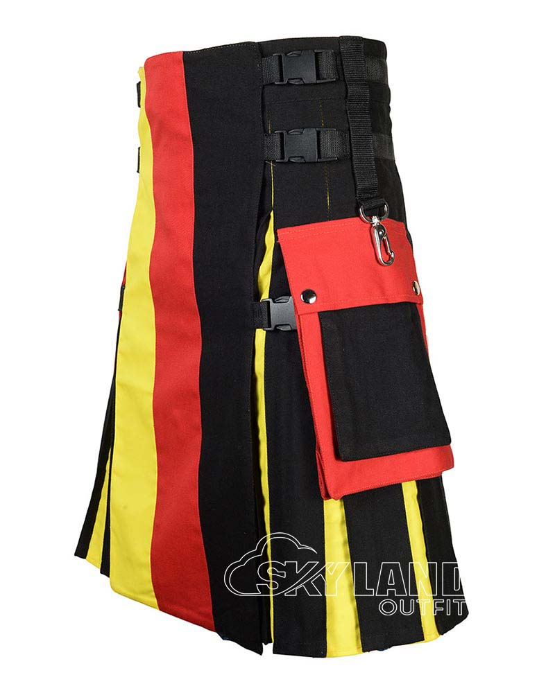 Red Black Yellow Hybrid Kilt – Custom Scottish Utility Kilt for Men
