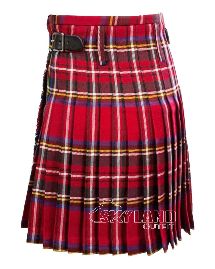The Royal Stewart Modern Tartan 8 Yard Kilt blends Scottish tradition with premium craftsmanship. Made from a wool blend, this traditional Scottish kilt features deep knife pleats, adjustable leather straps, and a mid-knee fit. Perfect for weddings, Highland games, and formal occasions.