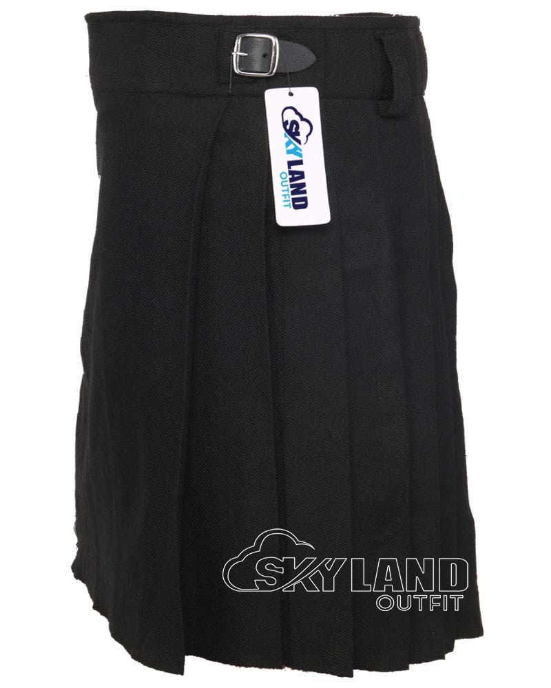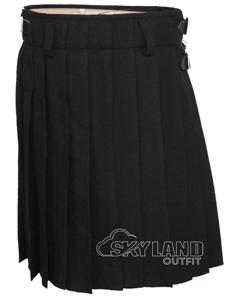 Solid Black Tartan 5-Yard Kilt | Lightweight Casual Traditional Kilts