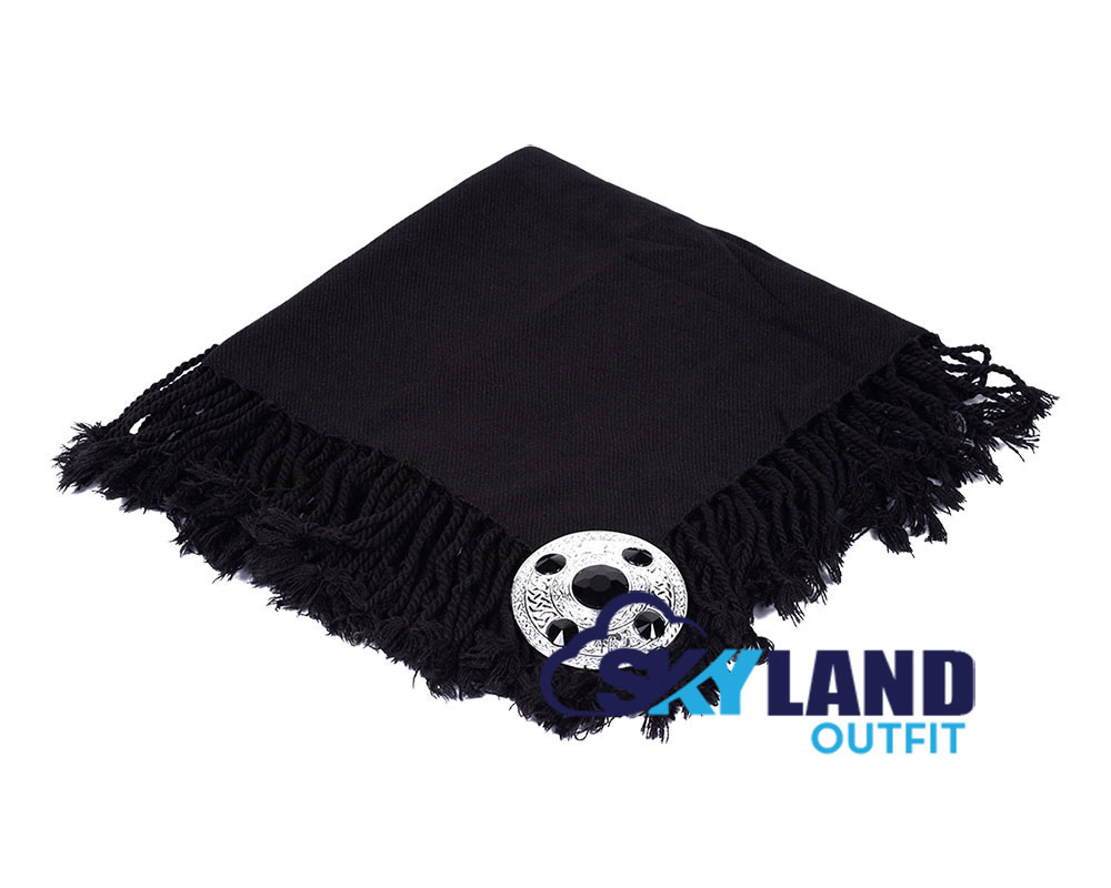 Solid Black Tartan Kilt Fly Plaid with Free Brooch