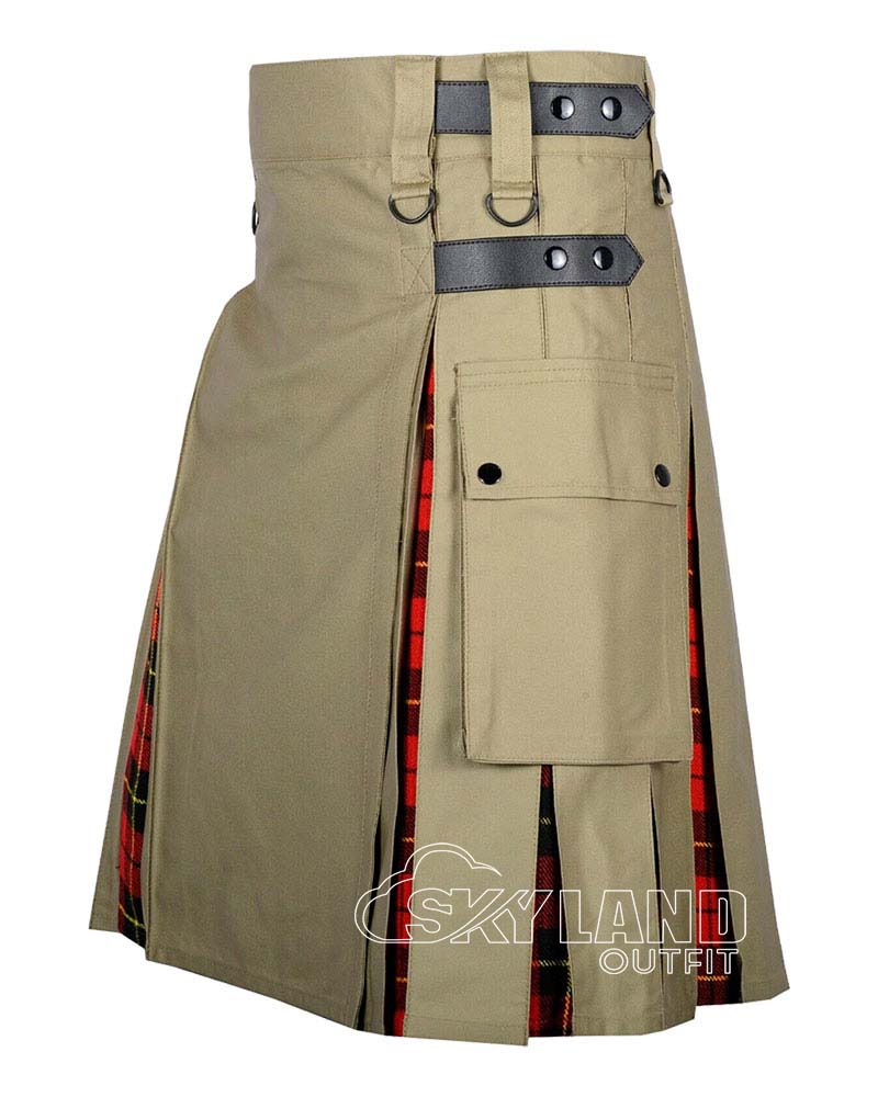 Wallace Tartan Hybrid Utility Kilt | Khaki Cotton Men Kilts