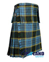 Showcase Lowland precision in an Anderson Modern kilt. Eight yards of 16 oz wool-blend worsted—cool steel-blue, forest-green and white over-check—are pleated to the sett and cut on the bias for military swing. Twin deep-cargo pockets snap off in seconds, turning field-ready utility into formal elegance. Hand-stitched in Scotland with three adjustable leather straps, chrome buckles and traditional fringe; fully lined waistband kills itch, selvedge-sealed hem stops fray. Made to your exact measurements for weddings, games or office wear—carry Anderson heritage with 21st-century function.