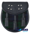 Black Watch Tartan Sporran Black Leather Scottish Sporran, Show off your Scottish clan pride without breaking the bank with this Made-to-Order Black Leather Sporran featuring your family tartan. Designed for those who want a traditional look at a budget-friendly price, this sporran proudly displays your clan tartan on the front, complemented by three matching leather tassels.