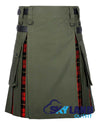 The Hybrid Utility Kilt – Olive Green Cotton & Wallace Tartan Kilt perfectly merges rugged functionality with traditional Scottish heritage. Made from durable olive green cotton and accented with bold Wallace tartan pleats, this hybrid kilt delivers both strength and timeless Highland style.