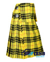 Carry the bold “Loud MacLeod” into 21st-century life. Eight yards of 16 oz wool-blend worsted—bright yellow field crossed by jet-black stripes—are pleated to the sett and cut on the bias for that famous Lewis swing. Twin deep-cargo pockets snap off in seconds, turning parade-ready flair into formal elegance. Hand-stitched in Scotland with three adjustable leather straps, chrome buckles and traditional fringe; fully lined waistband kills itch, selvedge-sealed hem stops fray. Made to your exact measurements for weddings, ceilidhs or festivals—wear island pride with practical pockets.